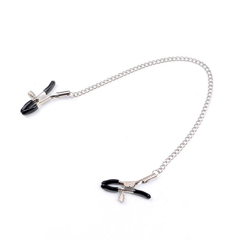 This fixture is of classic design and extremely easy to use. Its tension can be fully adjusted to achieve a softer or tighter pressing effect. The top of the rubber coating provides a comfortable touch. However, you can also remove it to obtain a stronger "compression sensation". These fixtures are fixed by a sturdy gun-gray chain, adding a certain weight and thus providing a more intense stimulating effect. The total extension length of the fixture is approximately 32cm.